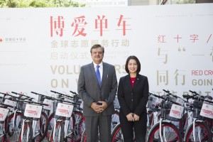“博爱单车”全球志愿服务行动在京启动,该行动最终将为全球100万红十字与红新月志愿者提供100万辆自行车,促进多方共同参与人道事业。
