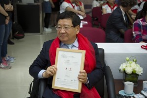 5 月 15 日,红十字/红新月与“一带一路”同行暨“博爱单车”全球志愿服务行动在京启动。中国红十字会会长、红十字会与红新月会国际联合会副主席陈竺,红十字会与红新月会国际联合会秘书长哈吉 · 阿西,红十字国际委员会东亚地区代表处主任裴道博,红十字会与红新月会国际联合会东亚地区代表处主任彭玉美,巴基斯坦红新月会主席赛义德 · 伊拉希,吉尔吉斯斯坦红新月会会长阿扎玛提 · 巴拉里诺夫,塔吉克斯坦红新月会会长赛迪 · 库尔布诺夫,中国红十字会党组书记、常务副会长徐科,副会长郭长江、王海京、王汝鹏、王平,中联部、商务部、国家卫计委以及武警总医院、华山医院、北京 999 急救中心等相关部门和单位代表,中国生物技术股份有限公司、中国医药物资协会以及爱心人士徐小平先生等参加启动仪式。